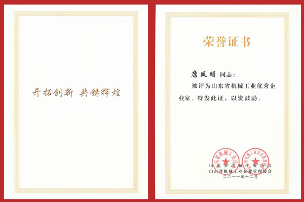 1月10日,山東省機械工業(yè)工作會議在泰安市東尊華美達酒店隆重召開,中國機械工業(yè)聯(lián)合會特別顧問朱森第、山東省機械工業(yè)協(xié)會會長劉衛(wèi)東、泰安市副市長閆新建等領(lǐng)導出席會議并頒獎。公司董事長、總經(jīng)理康鳳明,常務副總經(jīng)理潘憲平、副總經(jīng)理康峰等領(lǐng)導參加會議。董事長、總經(jīng)理康鳳明榮獲“山東省機械工業(yè)優(yōu)秀企業(yè)家”稱號,副總經(jīng)理朱洪臣榮獲“山東省機械工業(yè)有突出貢獻科技專家”稱號,副總經(jīng)理康峰榮獲“山東省機械工業(yè)優(yōu)秀企業(yè)(行業(yè))管理工作者”稱號。