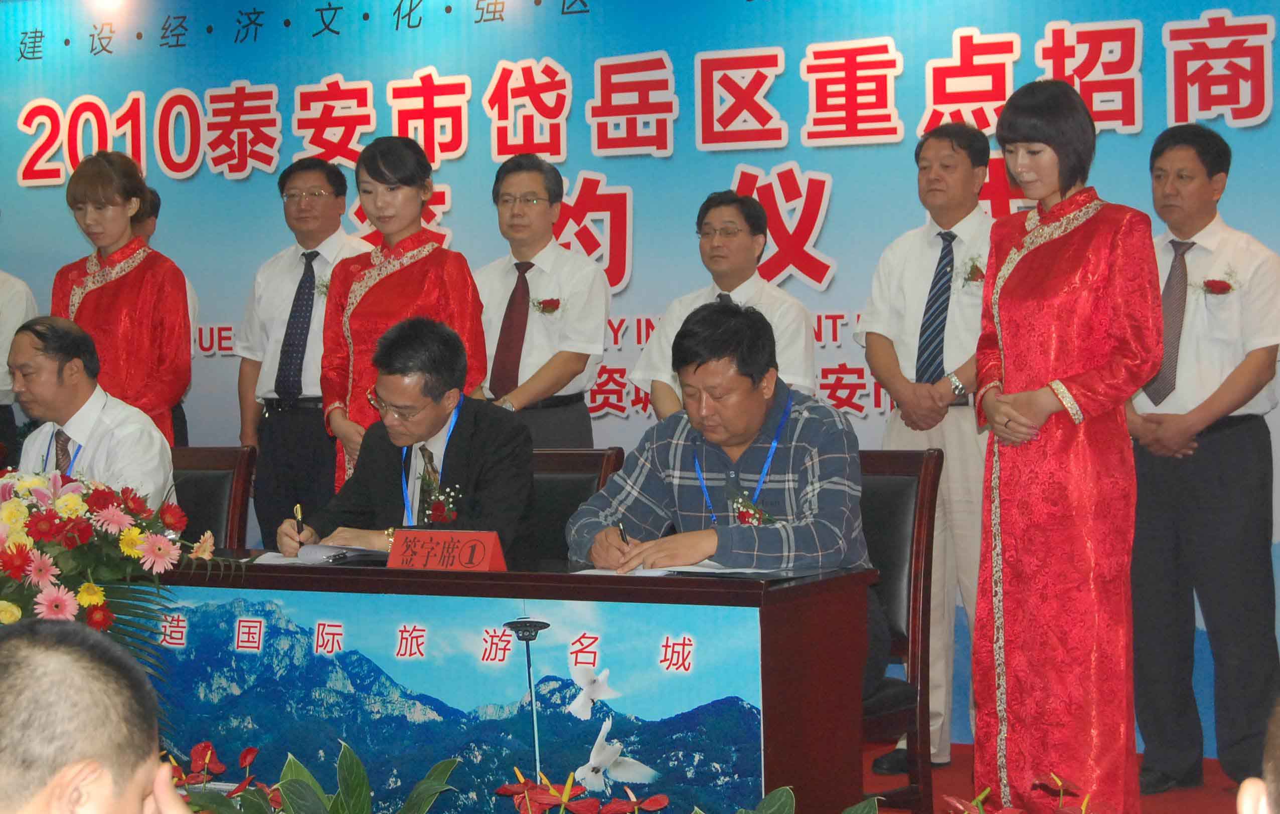 9月7日,2010泰安市岱岳區重點招商項目簽約儀式在區政大樓舉行,圖為公司董事長、總經理康鳳明與日本住倉機械株式會社社長紀明岳簽署有關合作協議。