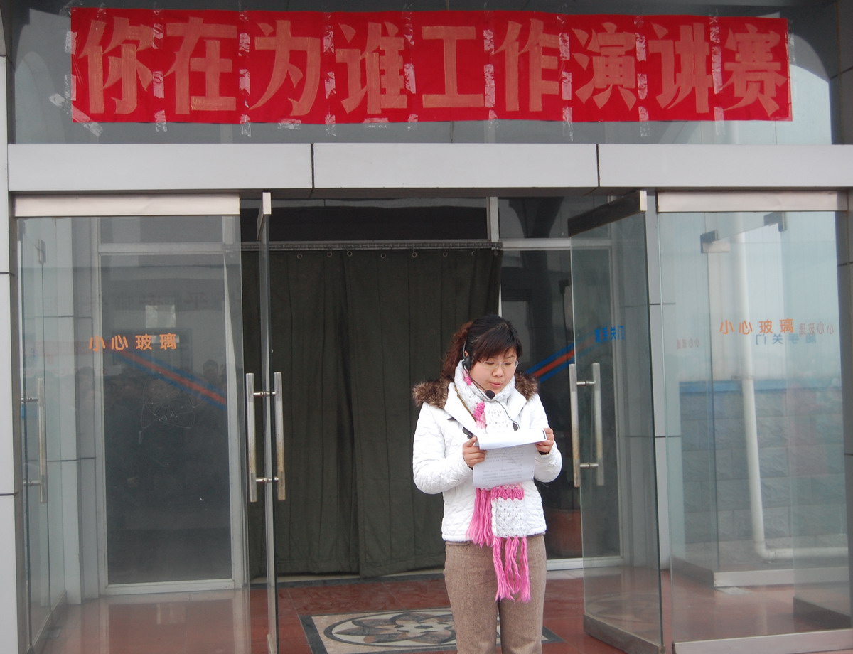 在學習的基礎上,于12月24日活動領導小組從百余名職員中選出12名選手參加了演講預賽。經激烈角逐,吳彬、黃迎春奪得了預賽一等獎,孫衛東、雷慧明、楊蕊、王開蘭獲得二等獎,趙雙雙、韓志仁、馬甜、石紅、朱學慧、王繼增獲得三等獎。
